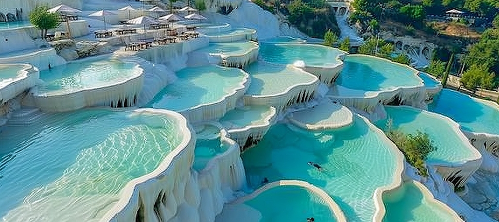• 하얀 절벽 위로 흐르는 푸른 온천물을 체험 해보는 온천 휴양지 파묵깔레