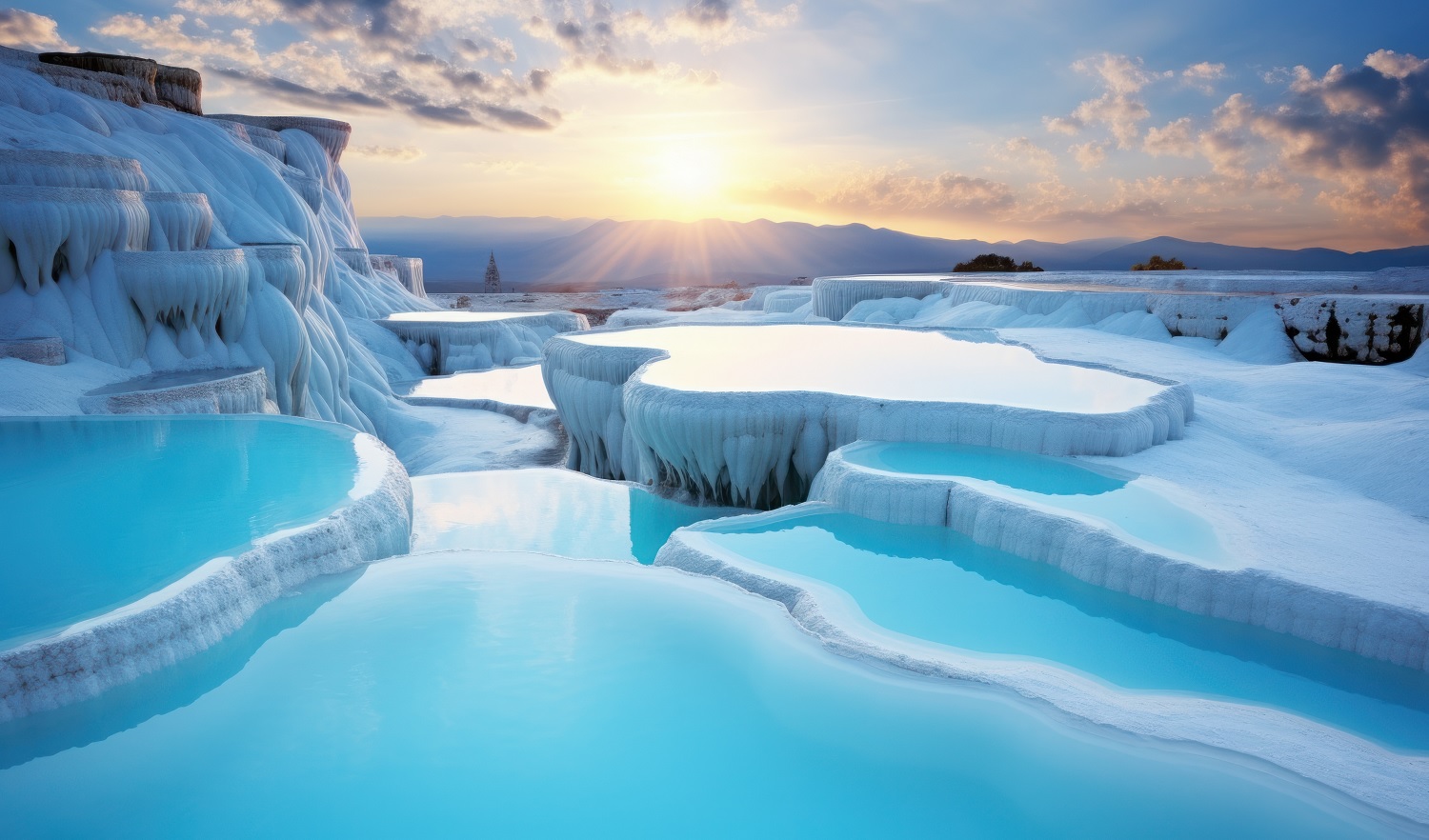 • 하얀 절벽 위로 흐르는 푸른 온천물을 체험 해보는 온천 휴양지 파묵깔레